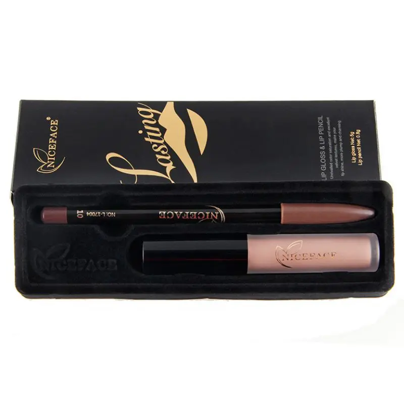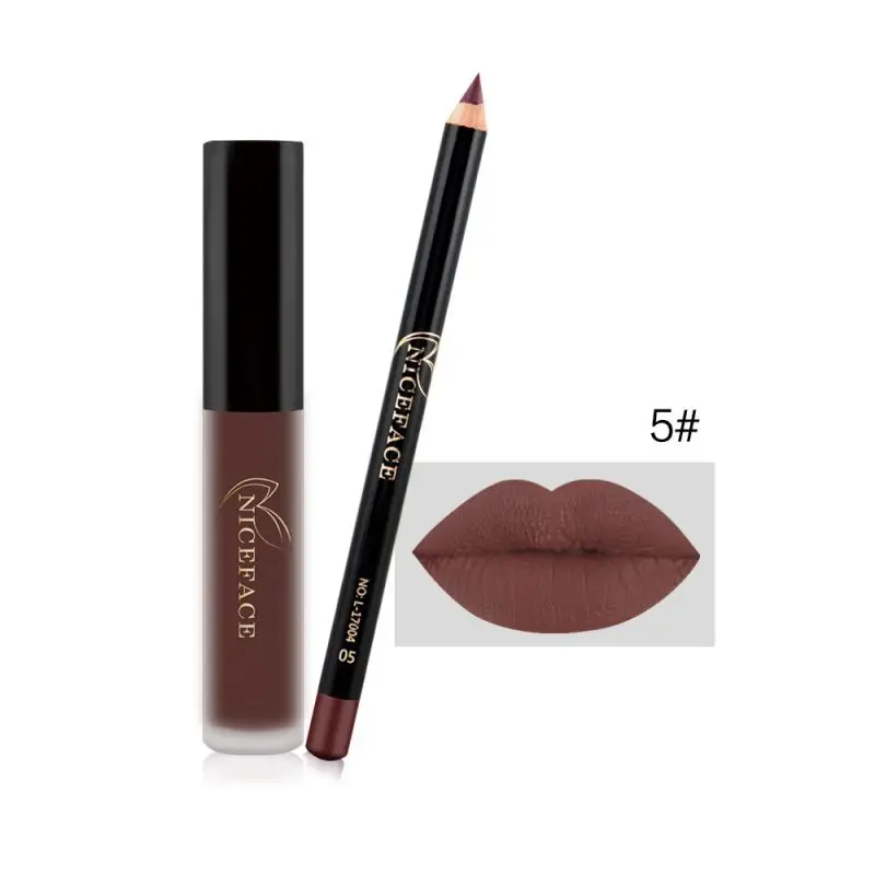 Cheap Offer of Lip Make Up Suit Cosmetic Matte Lipstick Long Lasting Waterproof Liquid Lip Gloss + Lip Liner Makeu